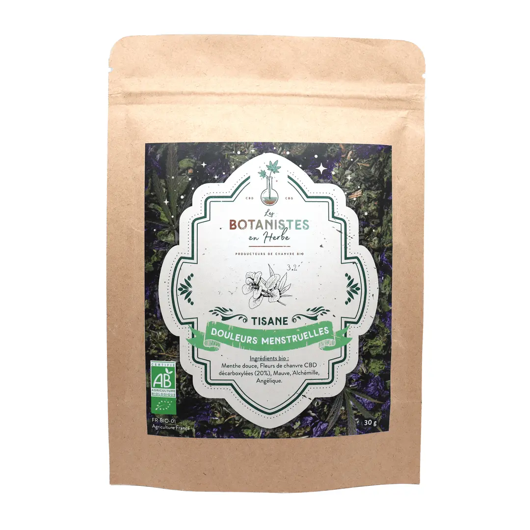La tisane Douleurs menstruelles BIO est une alliance de chanvre issu de l’agriculture biologique, garanti sans THC, et de plantes médicinales. Le CBD a des vertus bien connues, qui sont susceptibles d’apaiser de manière directe l’intensité des crampes menstruelles. Il en va de même pour plusieurs des autres ingrédients de cette infusion : la Mauve, l’Alchémille ou encore l’Angélique. Ces différents effets viennent se combiner pour vous offrir une infusion idéale pour lutter contre les douleurs menstruelles.